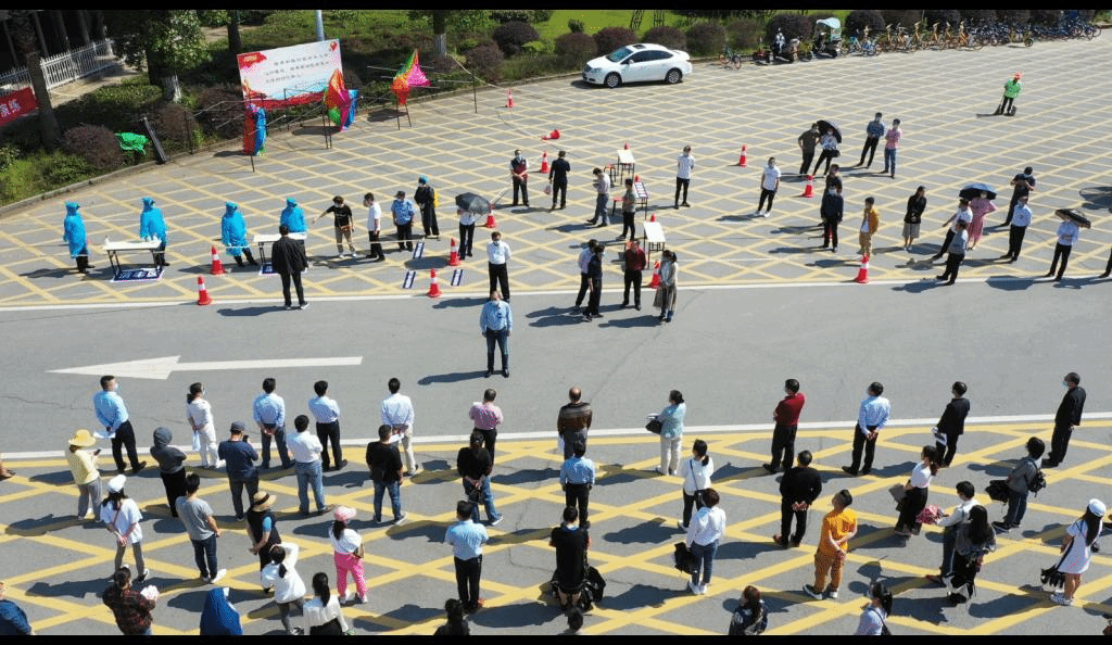 为确保本次模拟演练顺利开展,beat365英国官方网站防控领导小组制定了详细的疫情防控演练方案。在学生入校报到疫情防控应急处置演练中,老师们佩戴口罩,组织学生间隔一米有余,有序在校门口核验身份、检测体温、消毒、扫码确认以及突发疫情应急处置演练等。在学生上课演练中,学生分两路排队(人与人间隔一米)进入教学楼、在教室门前排队测量体温,并按指定座位就坐,并进行了教室突发应急疫情防控处置演练。在宿舍中的学生出现发热等情况的演练中,按发现、报告、隔离、测量体温、送医、消毒等流程进行。在学生就餐演练中,师生自带餐具、间隔在1米以上排队取餐,即取即走,用餐的师生须按标识到指定就餐,单人单桌同向就座。在隔离观察区,按接收、安置、检测登记、物业消毒、物资保障、安全保障、病情变化、解除隔离的流程进行。场景中的学生由各二级学院分管学生工作的领导和辅导员扮演。