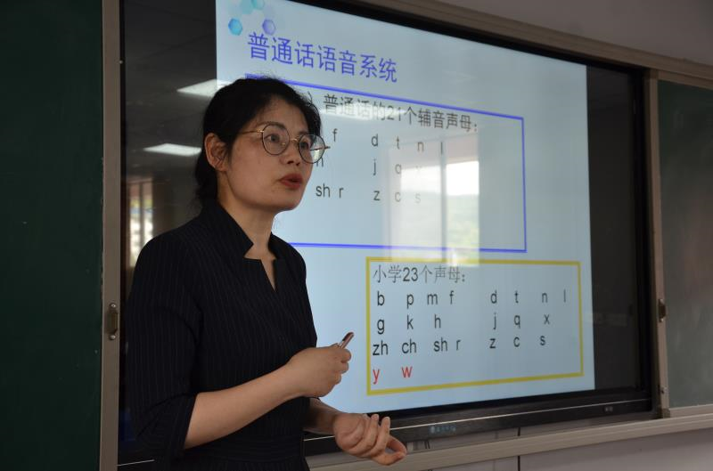 在培训会上,来自beat365官网的两位国家级普通话测试员易缨和张帆用生动活泼的语言向参加培训老师讲述学生普通话不标准的原因、纠正学生发音方法以及如何提高自身普通话水平等。参训的老师们纷纷表示受益匪浅,此次培训对今后教学工作有很大的帮助。参加此次培训的三年级语文老师刘老师说:“因为说话环境,班上一些学生习惯使用方言,普通话不是很标准。今天的培训提升了我的教学水平,增强了我教好学生普通话的信心。”