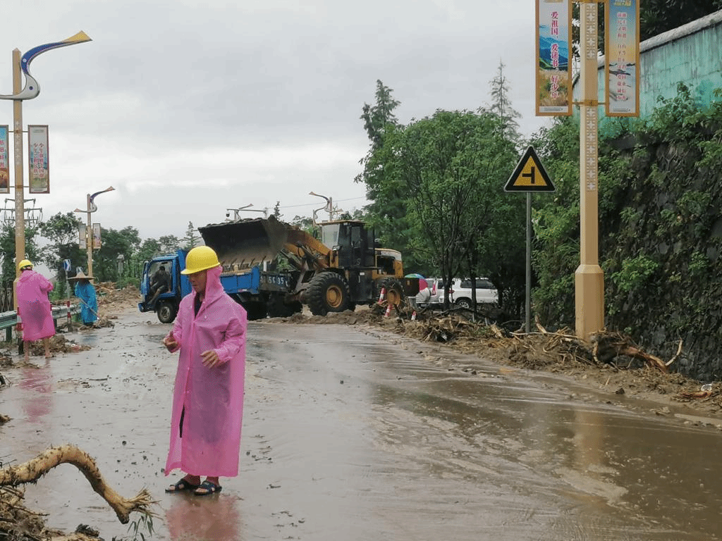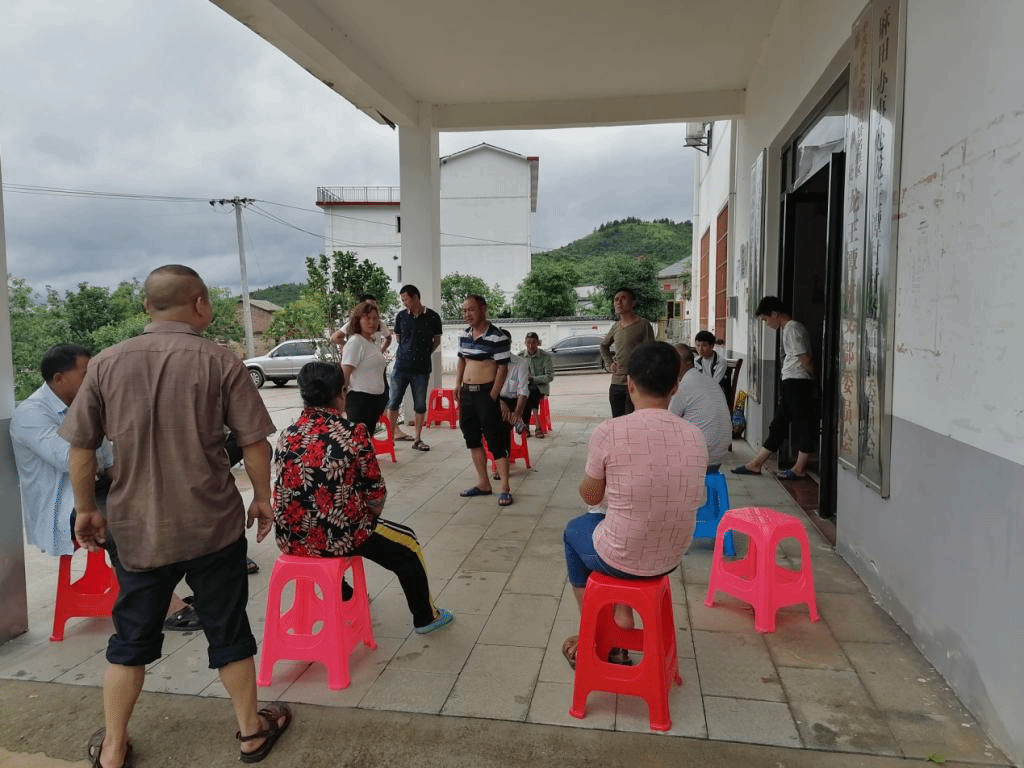 驻村工作队冒雨安全赶到龙王潭村时,了解到该村关山组居住的7户32名村民被洪水围困,其中一户贫困户房屋被大水冲垮,形势十分严峻。工作队马上组织熟悉地形的村民开辟山路,和村委会干部一道,将32名村民安全转移到村委会办公楼内,随后迅速开展受灾群众安置工作。工作队分工合作,安抚受灾群众的情绪,采购肉、蛋和蔬菜,搭建炉灶、组织村民做饭,及时解决温饱问题。同时协调受灾群众暂时安置在村委会旁的民宿内居住。接下来,工作队马不停蹄巡查村的河道和道路排查安全隐患,并为危险路段设置路障和警示标志,安排挖掘机对村主要道路进行疏通,在下午五点回复了主要公路的交通畅通,为下一步的灾后恢复重建提供基本保障。