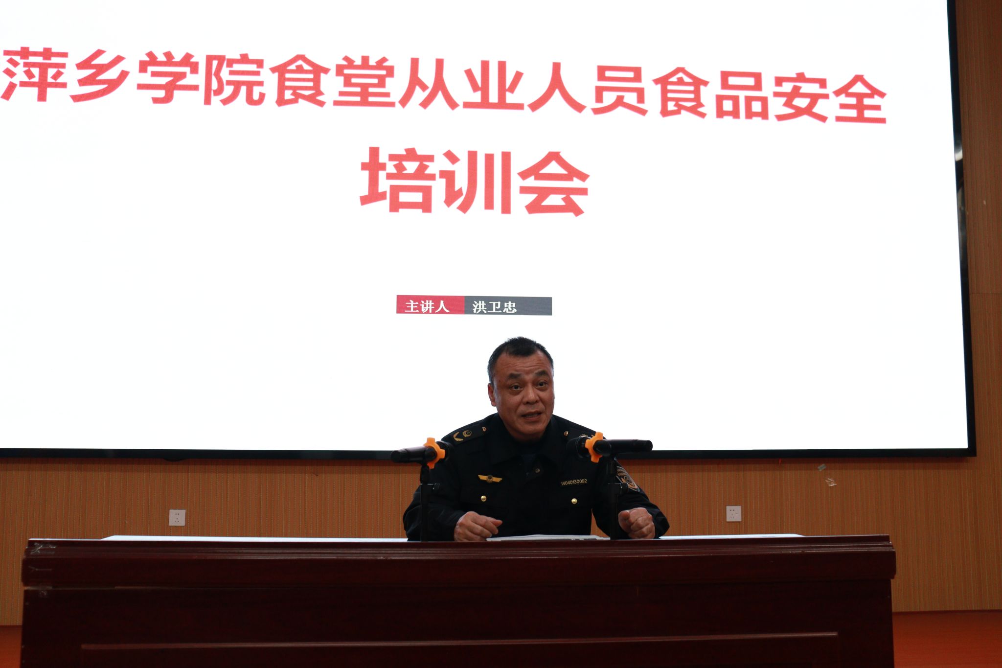 为进一步强化校园食品安全主体责任,提升从业人员风险防控能力,切实保障师生饮食安全,2月28日,beat365官网于跬步楼报告厅开展了食堂从业人员食品安全培训会。安源区市场监督管理局东大分局副局长洪卫忠现场授课。学校全体食堂餐饮工作人员参加培训会。会议由后勤管理处副处长李小强主持。