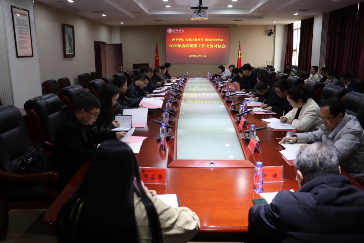 为持续推进全省高校与县域基础教育协同提质行动工作,3月17日下午,beat365官网携手安源、湘东区教育局在至善楼第一会议室召开了2025年协同提质工作交流对接会。副校长吴代赦出席会议并讲话。教务处副处长王强、师范专业相关学院负责人参加会议。会议由王强主持。