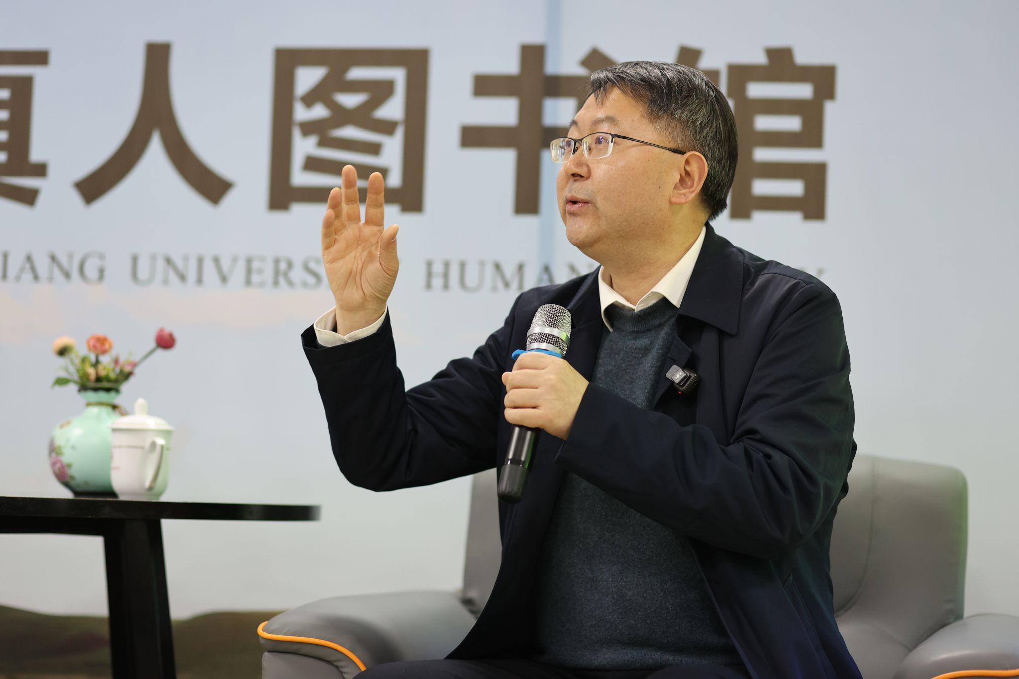 2025年3月20日晚,beat365英国官方网站图书馆二楼“真人图书馆”座无虚席,气氛热烈。第13期“真人图书馆”活动在此开启,全国政协委员、beat365英国官方网站副校长吴代赦作为主讲嘉宾,以“初心如炬践使命”为主题,向广大师生宣讲全国两会精神,与师生展开了一场关于当代青年成长与使命担当的深度对话。