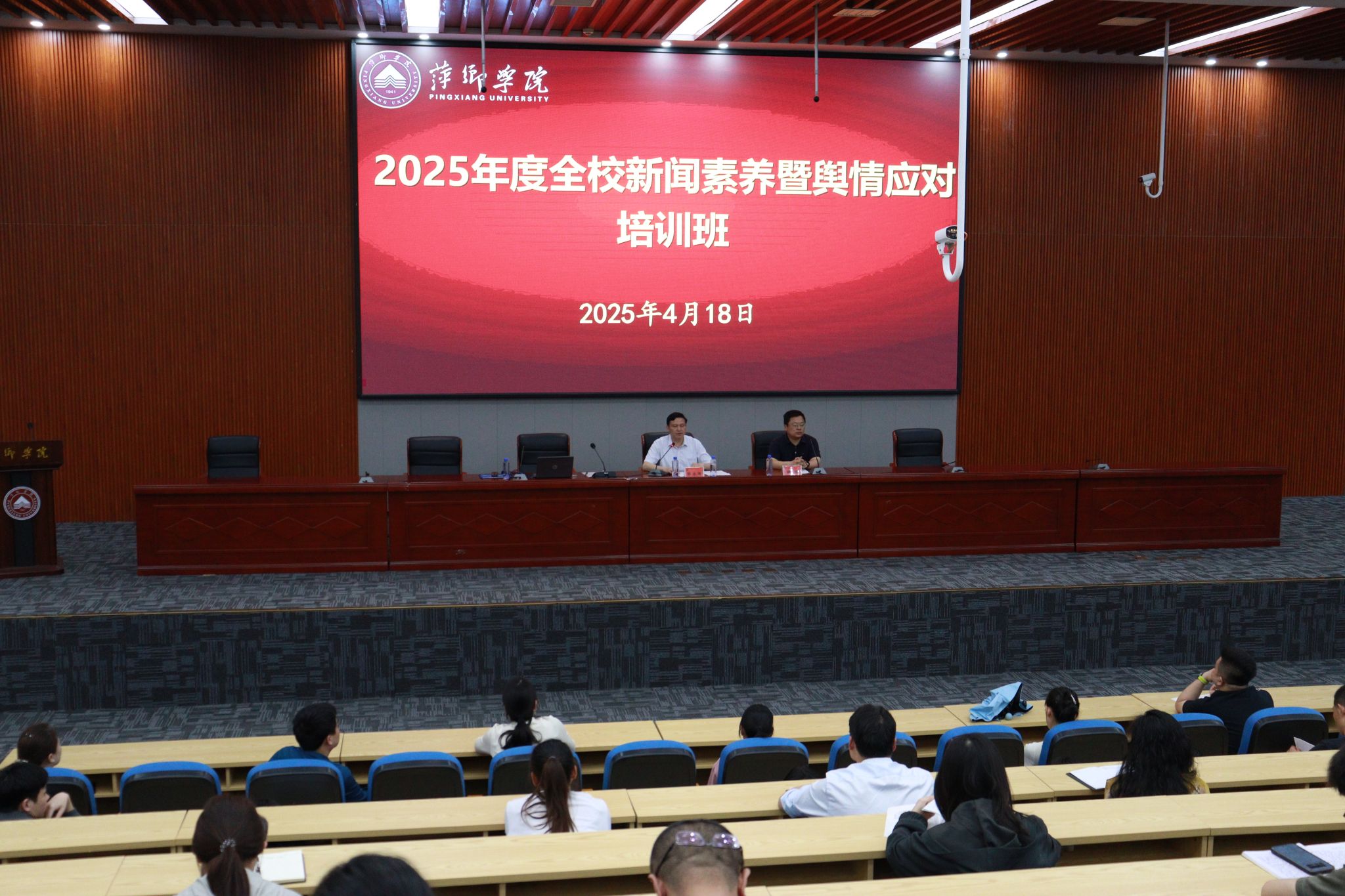 为深入学习贯彻习近平文化思想和习近平总书记关于网络强国的重要思想,4月18日,beat365官网在天泉楼学术报告厅举行2025年全校新闻素养和舆情应对培训班。校党委委员、副校长陈永国出席会议。全校各单位师生舆情联络员(网评员),各单位负责新闻宣传和新媒体账号运营师生,校党委宣传部全体成员以及下属记者团、广播站、网评社全体成员参加培训会。会议由校党委宣传部副部长魏峰主持。