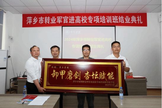 萍乡市退役军人事务局相关人员,2024年萍乡市转业军官进高校专项培训班全体学员,继续教育学院相关人员参加结业典礼。