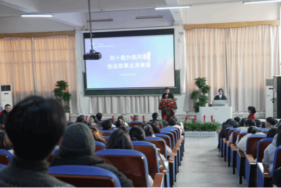 同日,“四十载外院风华,创业故事点亮青春”创业分享会隆重举办。优秀校友吴霞、刘生强、刘春华分别结合外贸创业、行业深耕、风控实务等经历,分享了从校园到职场、从专业到产业的成长路径。他们以“外语+行业”的复合视角,强调专业基本功、跨文化能力与实战思维的重要性,为商务英语学子提供了宝贵的职业导航,生动诠释了外语人才在服务地方经济、推动“萍乡智造”出海中的关键作用。