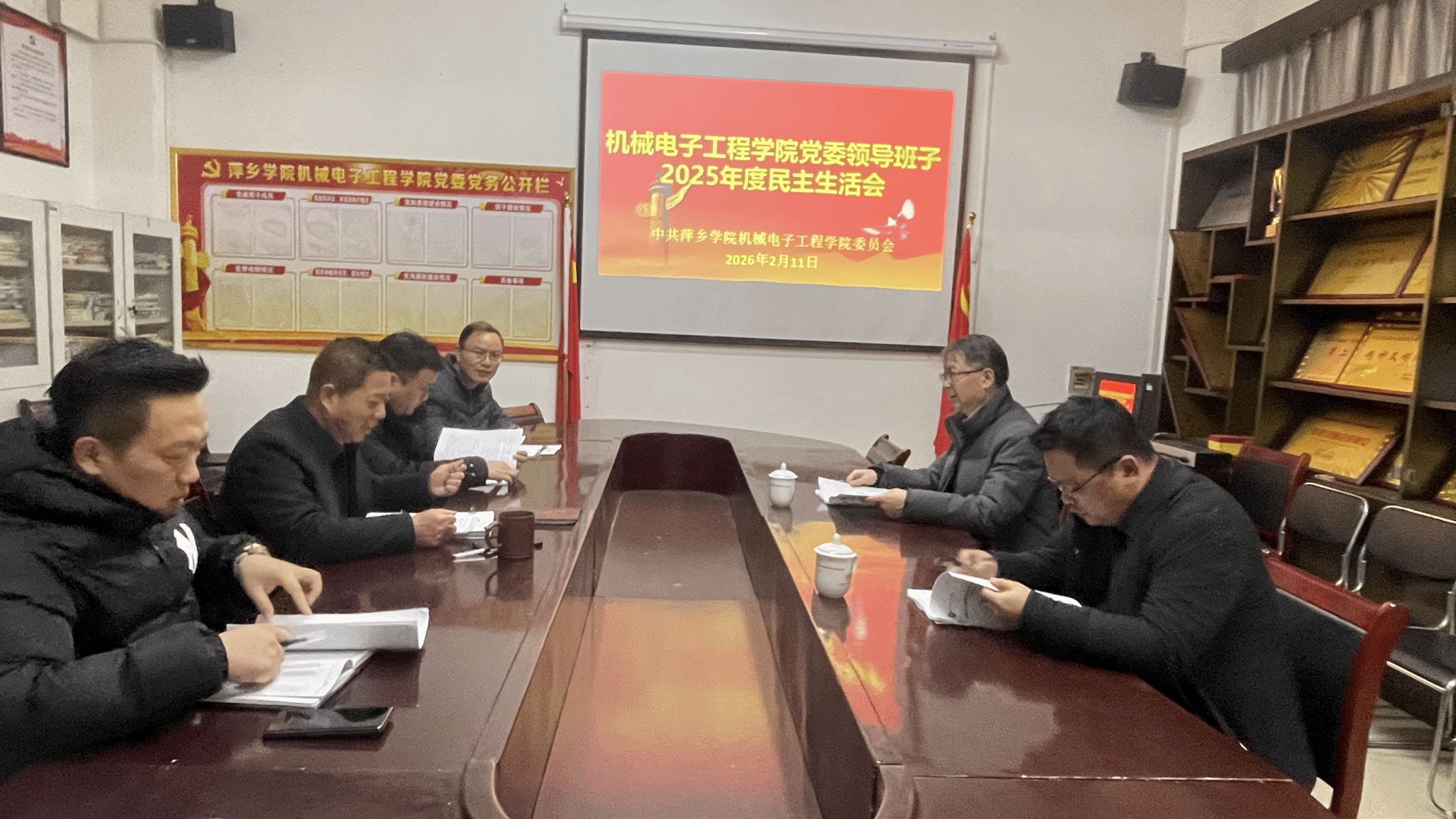 按照学校党委统一部署和要求,2026年2月11日,机械电子工程学院党委召开了2025年度民主生活会。副校长吴代赦、宣传部副部长魏峰到会指导。学院党委书记王斌主持会议,学院党委班子全体成员出席会议。