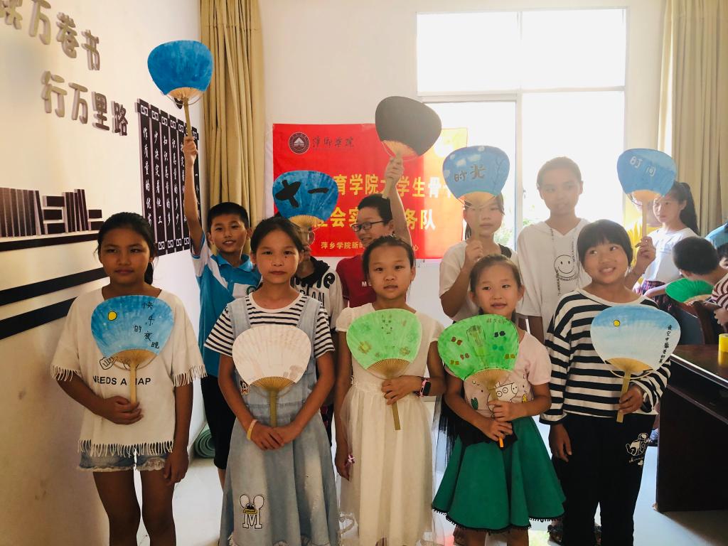 为围绕“七彩假期”青年志愿者关爱农村留守儿童志愿服务项目和“情暖童心”关爱保护农村留守儿童工程,践行以奉献、友爱、互助、进步为主要宗旨的青春志愿精神,坚持扶贫与“扶志扶智”相结合,学前教育学院社会实践服务队开展学业辅导、素质拓展、兴趣支教等形式的精准关爱志愿服务活动。今年是五四运动100周年,也是中华人民共和国成立70周年。在这个具有特殊意义的历史时刻,学前教育学院2019年暑期“三下乡”社会实践活动在萍乡市湘东区白竺乡大丰村正式启动。
