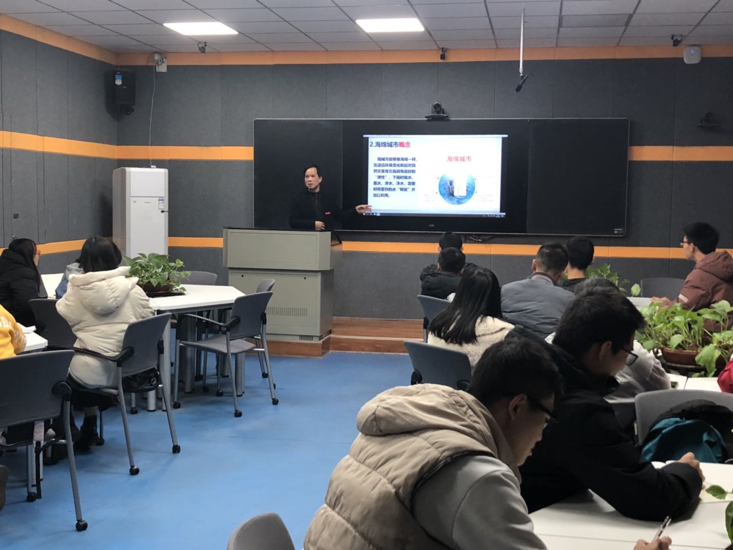 2019年12月3日下午,工程与管理学院院长李良松在英华楼3104为工管学院的学子们开展了关于“海绵城市”的知识讲座,他以多媒体的形式耐心细致的为同学们讲述了“海绵城市”的作用及发展前景。