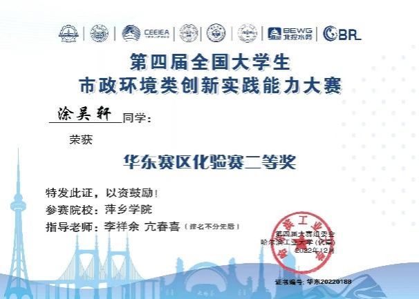 涂吴轩,材料与化学工程学院环境科学与工程专业2020级学生、共青团员,荣获国家奖学金、江西省物理创新知识竞赛三等奖和第四届全国大学生市政环境类创新竞赛二等奖,在2024年全国研究生招生考试中被南开大学环境工程专业录取。