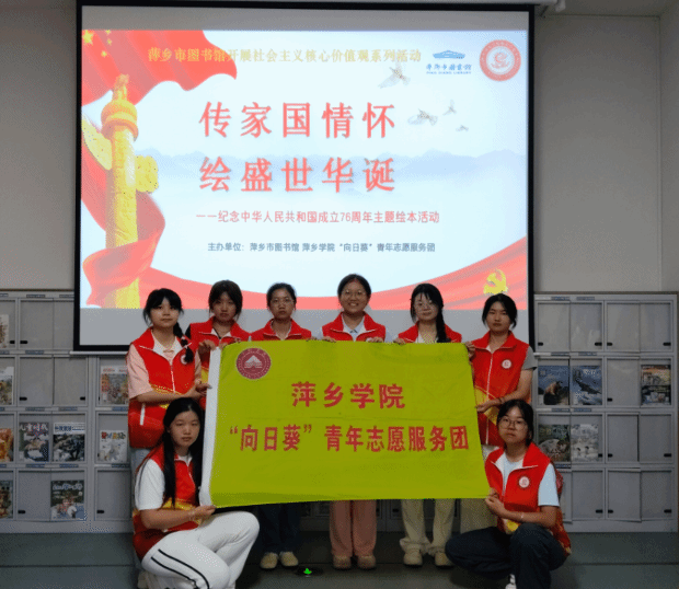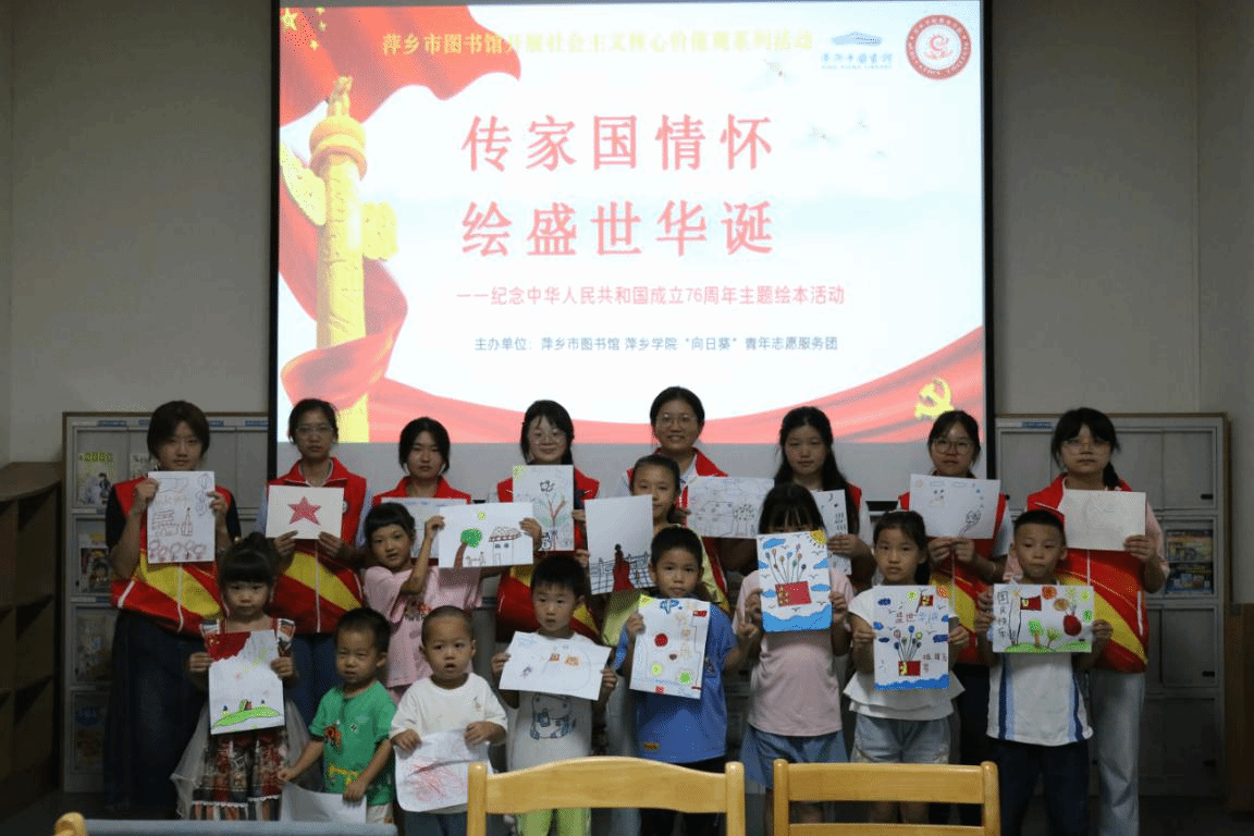 金秋送爽,丹桂飘香,在中华人民共和国成立76周年之际,beat365英国官方网站“向日葵”青年志愿服务团于10月1日下午走进萍乡市图书馆,一场以“传家国情怀,绘盛世华诞”为主题的国庆志愿服务活动温情启幕,为孩子们带来了一堂生动有趣的“爱国启蒙课”。