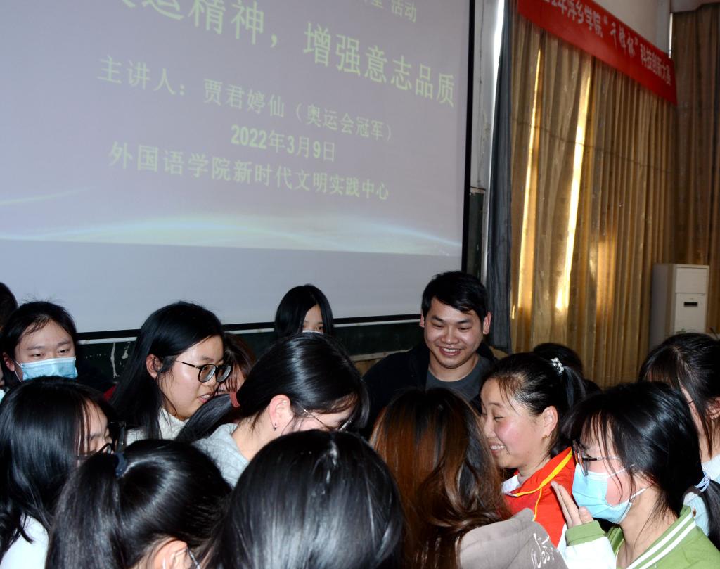 为开展好外国语学院“五航”思政建设工程之“引航工程”活动,积极推进学院新时代文明实践中心建设,进一步落实立德树人根本任务,激发学生的爱国热情、学习奥运精神、增强学生的意志品质,3月9日,正值北京正在举办冬残奥会之际,外国语学院邀请了残奥会冠军贾君婷仙、国际残奥会田径大奖赛冠军李小文来校讲座。讲座主题为:“学习奥运精神,增强意志品质”,来自全校各个学院的三百多名学生聆听了讲座。讲座由外国语学院党委副书记刘佳萍主持。