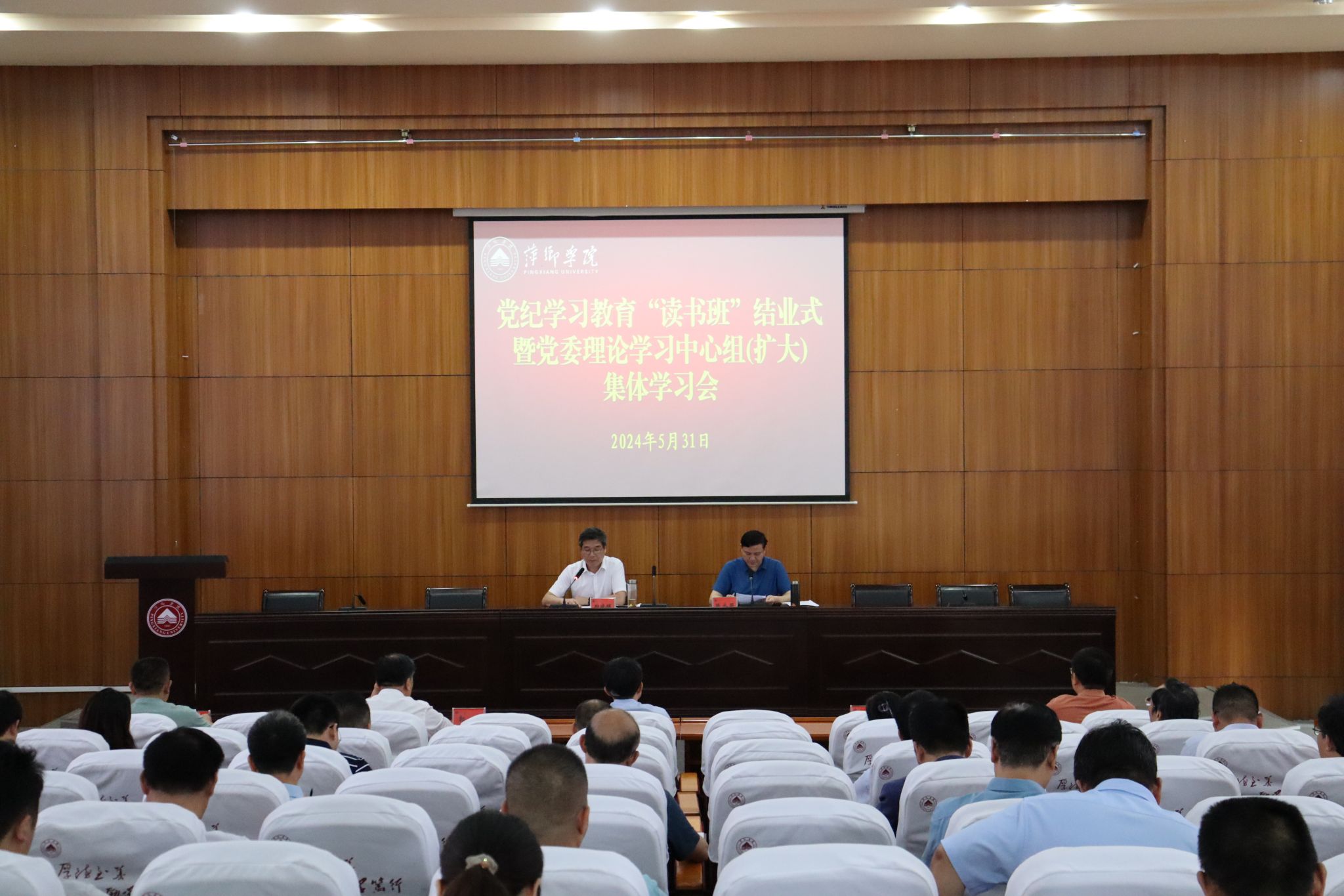 5月31日,学校在至善楼报告厅举行党纪学习教育读书班结业式暨党委理论学习中心组集体学习会,深入学习贯彻习近平总书记关于党纪学习教育的重要论述和指示批示精神、《中国共产党纪律处分条例》和上级文件精神,认真总结读书班成效,积极交流学习思想感悟,引导全校党员干部进一步树牢底线意识、纪律意识,推动学校党纪学习教育走深走实。校党委书记邱晓辉主持会议并讲话,他强调,党纪学习教育是一项长期任务,要把党纪学习教育作为党员干部的必修课、常修课,真正使学习党纪过程成为增强纪律意识、提高党性修养的过程,将读书班的学习成效转化为推动工作的强大动力,奋力开创学校办学事业高质量发展新局面。全校副处级以上领导干部参加会议。