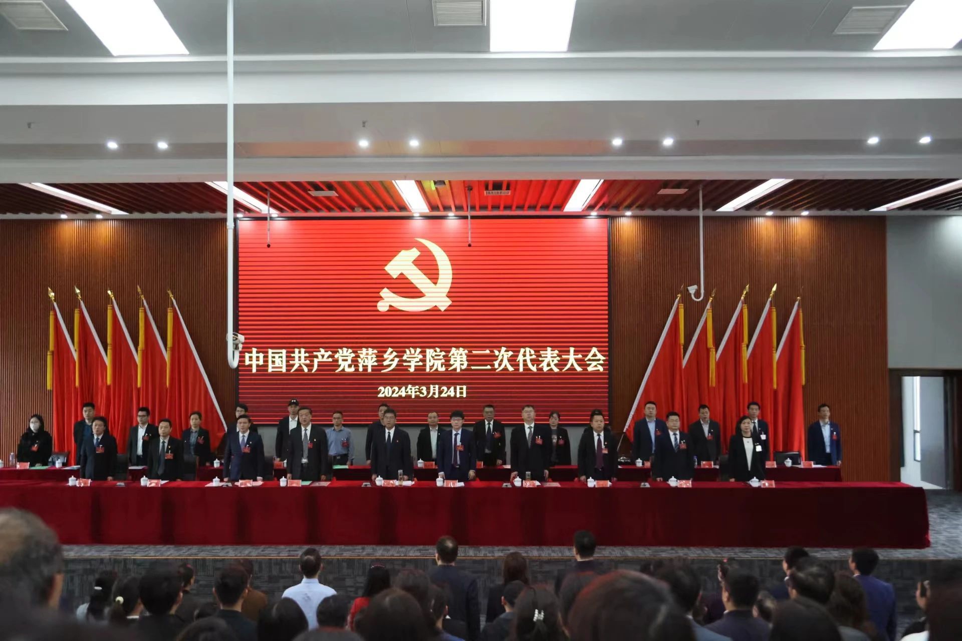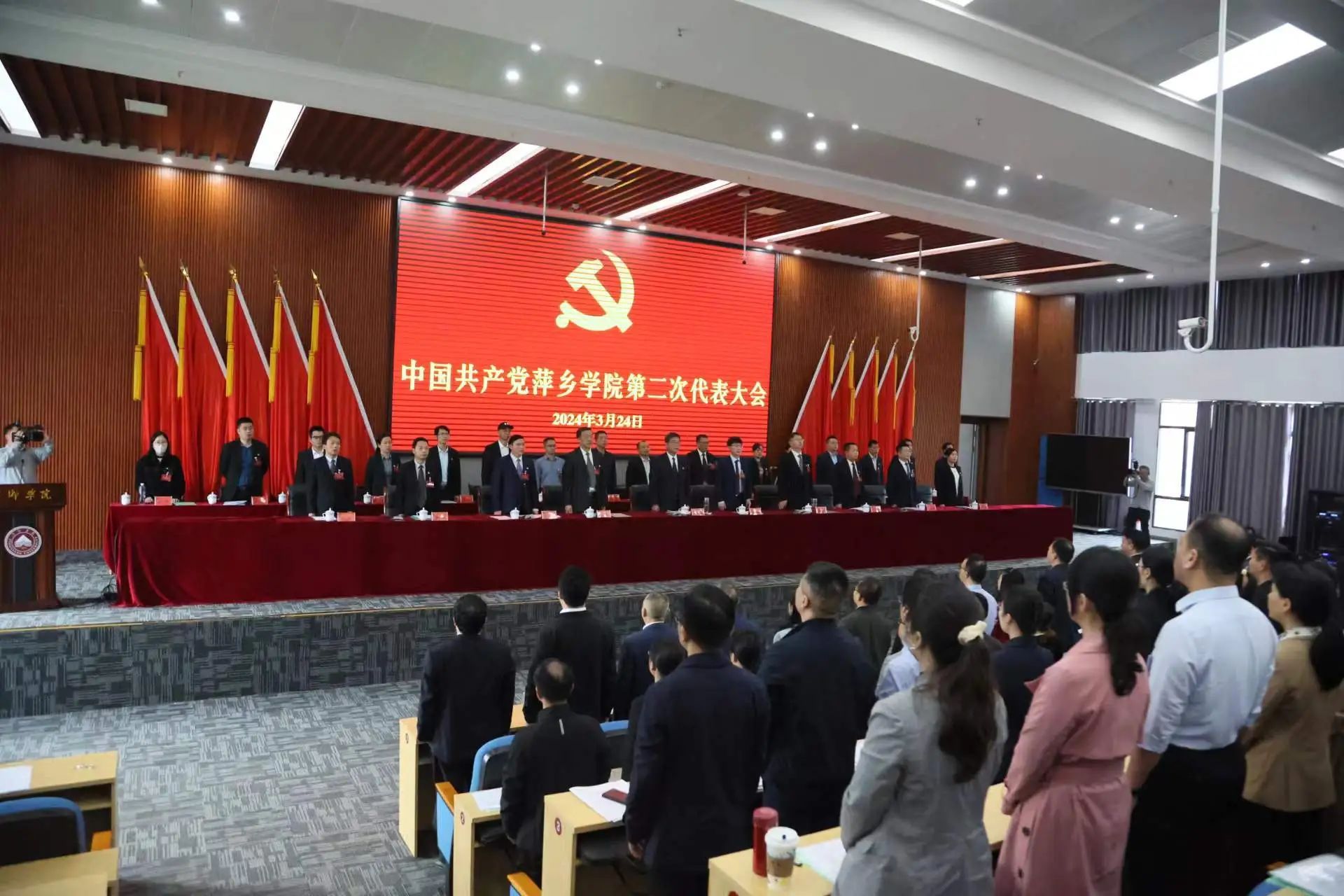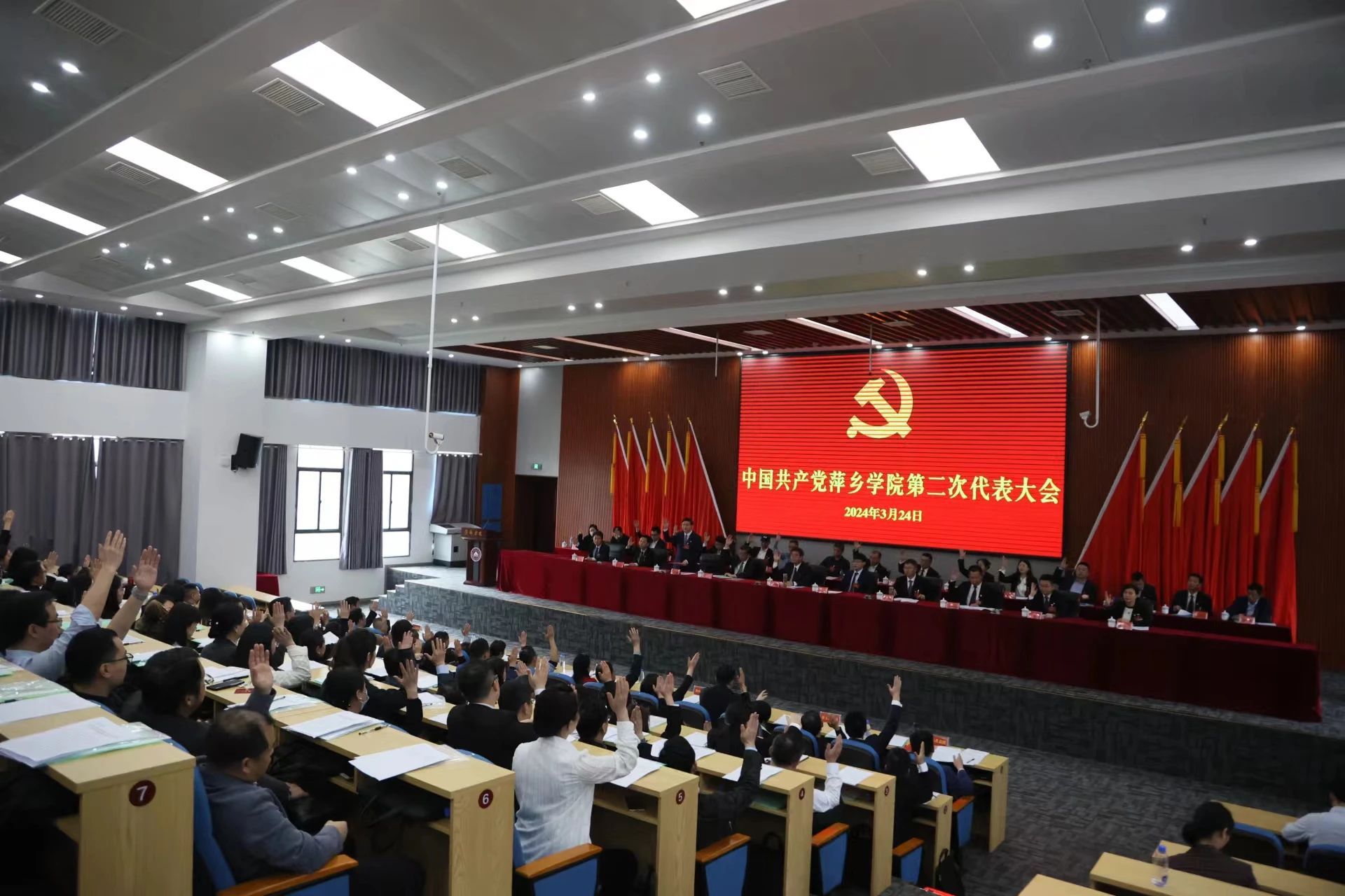 邱晓辉号召,全校上下要更加紧密地团结在以习近平同志为核心的党中央周围,聚焦习近平总书记考察江西提出的“走在前、勇争先、善作为”目标要求,全面贯彻党的二十大精神,深入学习贯彻习近平新时代中国特色社会主义思想,在新一届的党委坚强领导下,带领全校共产党员和师生员工,勇担使命、劈波斩浪、行稳致远,为全面开启建设特色鲜明、优势明显的应用型本科高校新征程,为全力打造萍乡产业转型升级标杆城市、奋力谱写中国式现代化江西篇章作出更大贡献。