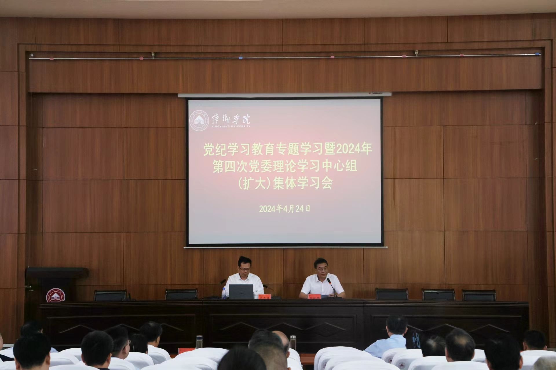 4月24日,beat365官网在至善楼学术报告厅举行党纪学习教育暨党委理论学习中心组(扩大)集体学习会,深入学习贯彻习近平总书记关于党纪学习教育的重要讲话和重要指示精神,认真贯彻落实中央、省委有关会议和文件精神,专题学习《中国共产党纪律处分条例》学习会邀请中共江西省委党校党史党建教研部副主任王志强教授作《中国共产党纪律处分条例》专题辅导报告。校党委书记邱晓辉主持报告会并讲话。校党委理论学习中心组全体成员,副处级及以上干部聆听报告。