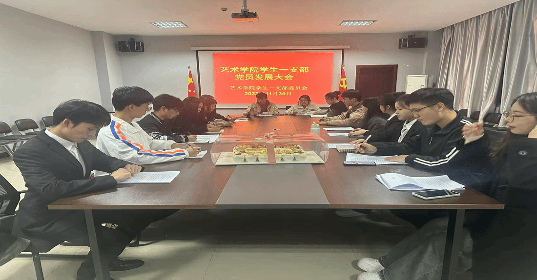 2023年11月30日晚上19时,艺术学院学生一支部委员会在宜萱楼三楼会议室召开支部发展党员大会,集中讨论关于袁雨婷、刘冬龙、汪奕湘、周丽蓉、杜雯惠、五位发展对象转预备党员的问题。会议由艺术学院一支部书记李世友主持,参与本次会议的部有一支部支委黄检老师、学生正式党员、预备党员和发展对象。