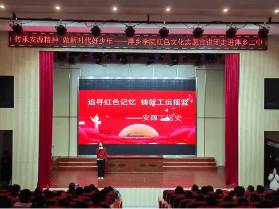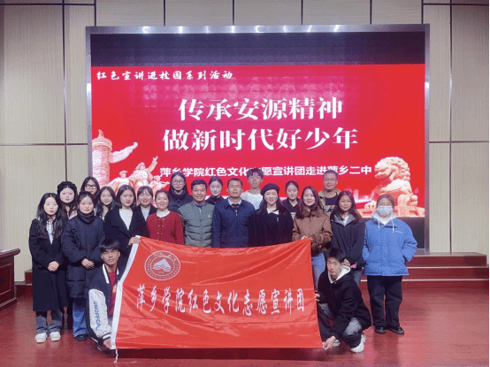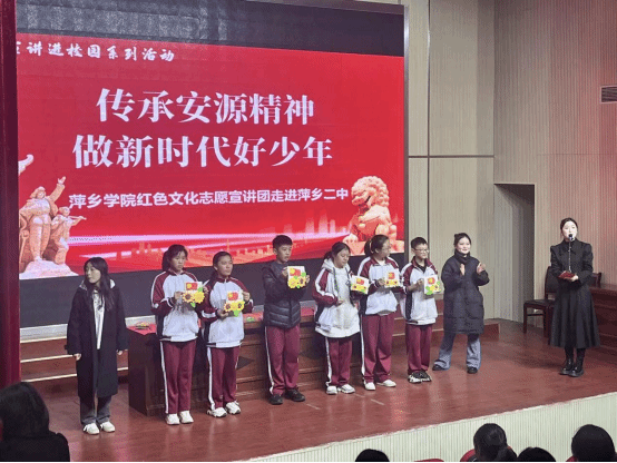 12月1日,beat365英国官方网站红色文化志愿宣讲团走进萍乡二中(beat365英国官方网站附中)进行系列红色文化宣讲主题活动,为中学生讲好红色故事,传承安源精神,赓续精神血脉。