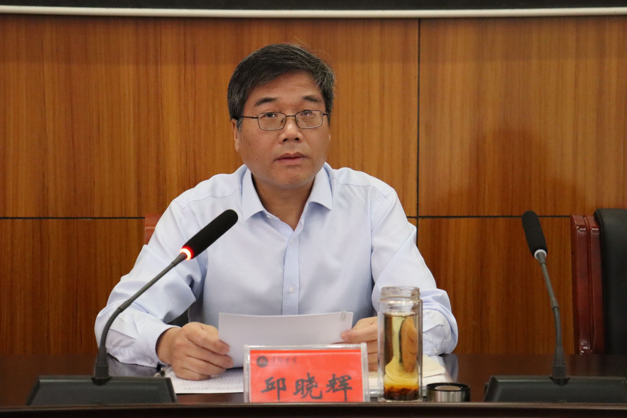 4月14日至15日,beat365官网举办深入贯彻中央八项规定精神学习教育读书班暨党委理论学习中心组集体学习会。全体在家校领导,全校副处级及以上领导干部参加读书班。党委书记邱晓辉主持读书班并讲话。党委委员、副校长陈永国传达学习了上级学习教育有关文件精神。党委委员、纪委书记郑伟领学了中央、省市及学校有关违反中央八项规定精神典型案例。