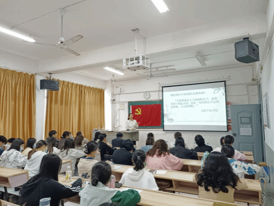 为深入推进学习贯彻习近平新时代中国特色社会主义思想主题教育,充分挖掘中华优秀传统文化内涵,引领广大青年增强文化自信,进一步坚定理想信念,5月23日,校党委委员田常红来到商学院,为商学院师生党员作专题党课报告。商学院党委书记刘根林、副书记吴华军,党政办、计财处全体党员,商学院全体党员教师,商学院学生党员以及入党积极分子一同聆听党课。